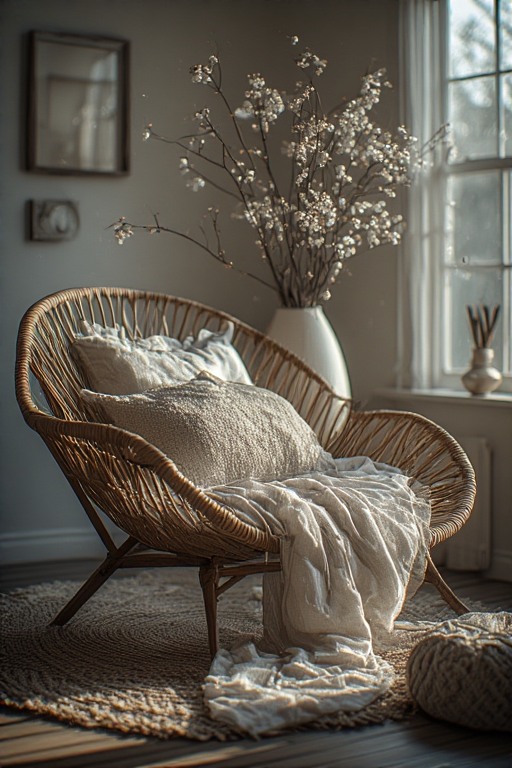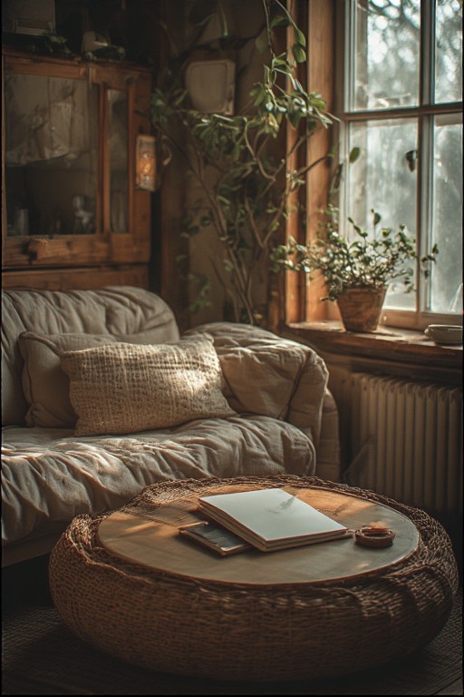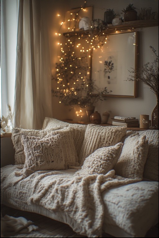 Sudut Nyaman dengan Cahaya Lembut dan Tekstur Hangat